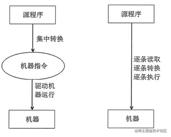 - “虚拟机”对二进制字节码进行解释,而“解释器”是对程序文本进行解释。