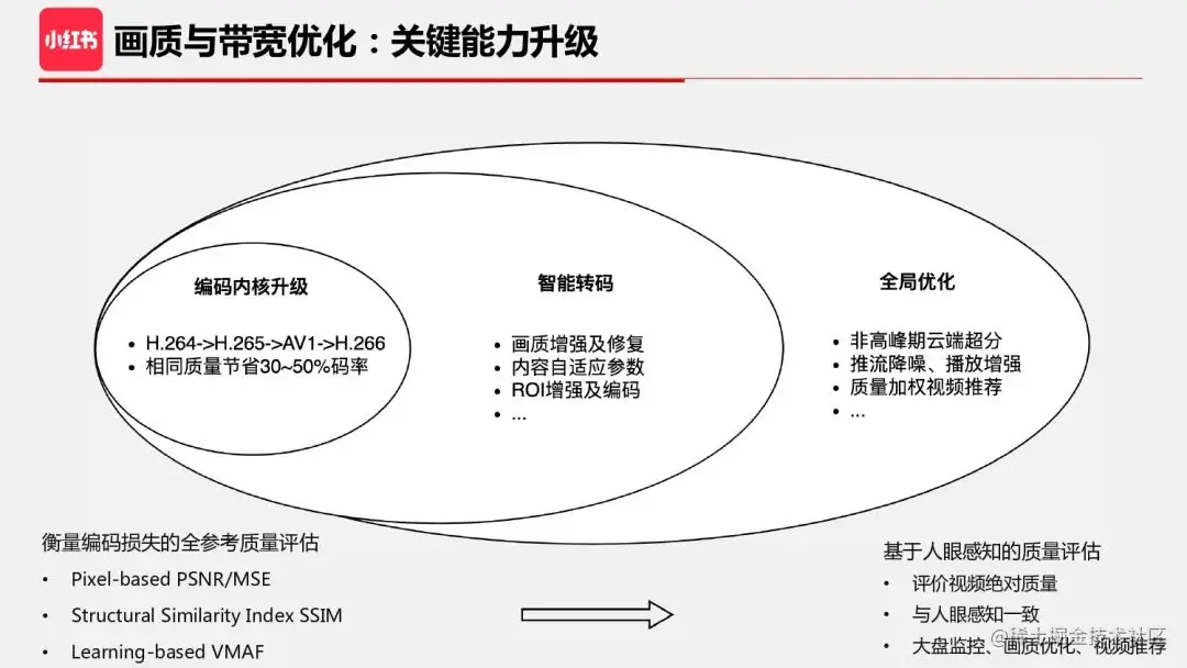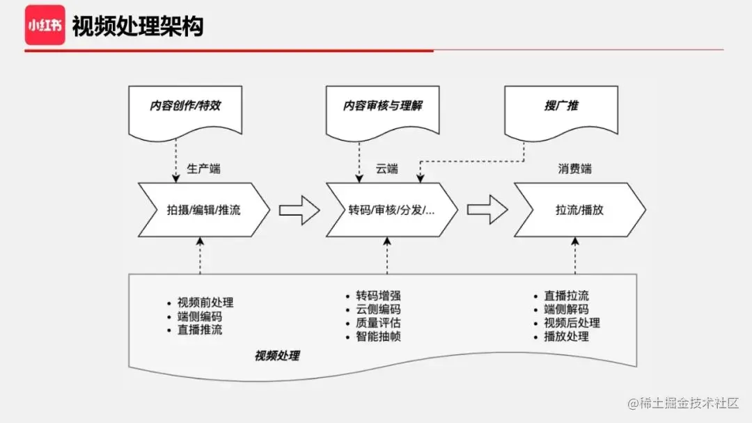 1. 首先介绍小红书的视频处理架构,以及我们如何思考音视频系统中视频处理最重要的两个目标,即提升观看画质体验和降低视频带宽成本。