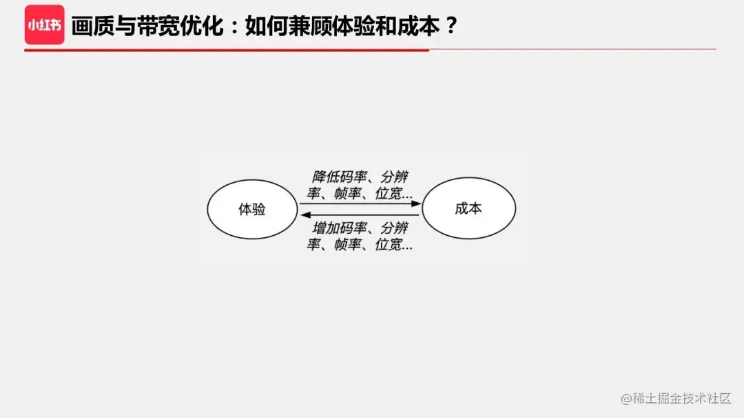 小红书成立专业的音视频团队还不到 2 年,如果是正常的研发路径,应该是先提升体验,容许增加一些成本。但是在疫情之后,全行业进入降本增效主题,降成本也成为我们重要目标之一。而提升体验是建立这个专业团队的初衷,在不牺牲用户体验的前提下来换取技术成本的节省,唯一的手段就是提升技术和优化策略。