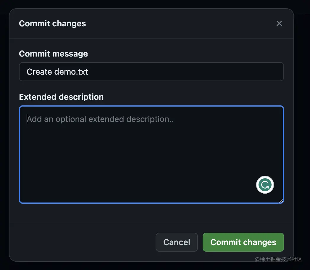 分别对应GitHub commit界面的commit message 和extended description。这个commit message有助于我们辨别每次都做了什么修改,所以这个是非常重要的,要认真填写。