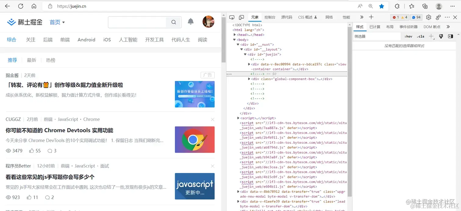 谷歌浏览器的开发者工具,可以在页面上右键 ---> 检查工具打开DevTool,或者直接F12键打开。