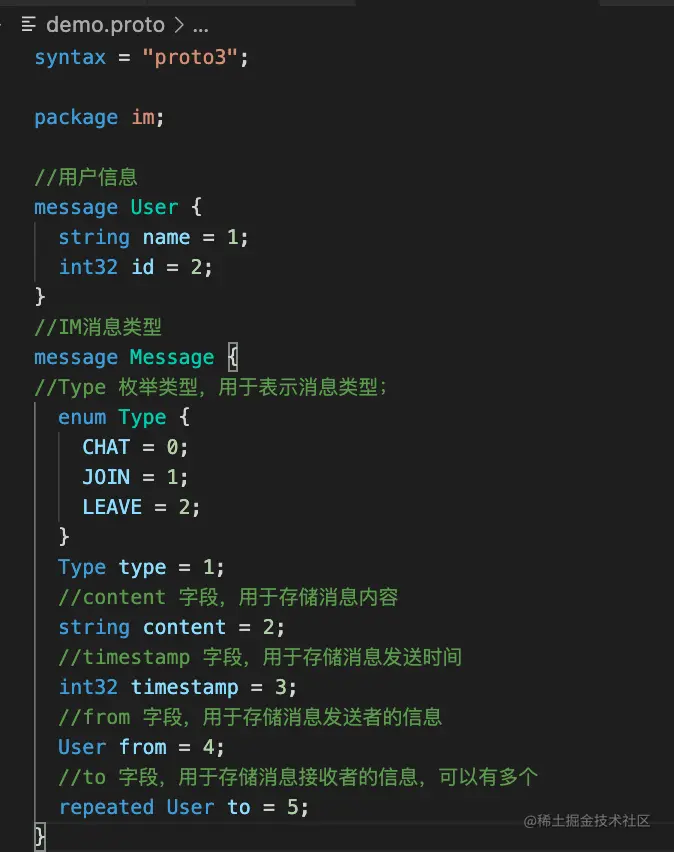 .proto文件中使用枚举类型代替字符串类型,因为如果使用字符串类型,每个字符串都需要用一个字节数组表示,而使用枚举类型只需要一个整数即可,可以减小消息大小 - 使用嵌套结构:在