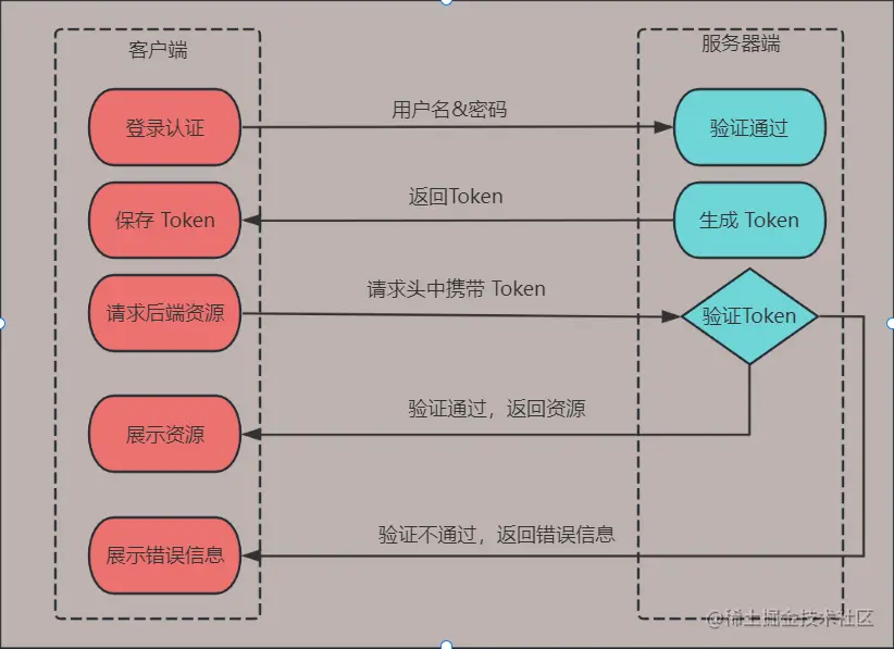 - 后台每次收到请求都去查询请求头中是否含有正确的 Token,只有 Token 验证通过才会返回请求的资源。