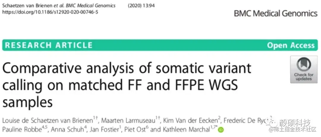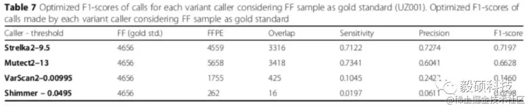 2020年7月份,在BMC Medical Genomics上发布了的一篇文章,对4.1版本的Mutect2进行了性能测试。作者选取了同一个组织样本的新鲜冷冻(Fresh Frozen)样本以及福尔马林固定切片(FFPE)样本进行了NGS测序,对结果数据进行肿瘤突变检测。随后以新鲜冷冻样本为金标准,考察不同检测软件流程在处理FFPE样本时的准确度表现。
