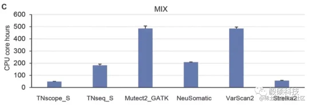 值得注意的是,文中使用的4.1.2并不是当前的最新版本,Sentieon TNhaplotyper2所匹配的版本4.1.9的准确性会比文中所显示的更加优异。同时,TNhaplotyper2运行时间仅为Mutect2的1/10,大大缩短了项目周期,节约了计算成本,是科研用户的最佳选择。