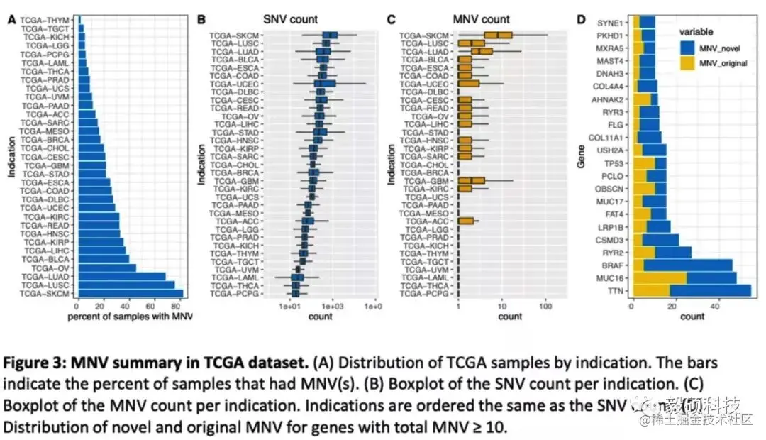 本篇文献来自于药企BMS(百时美施贵宝),BMS与Sentieon团队合作,利用Sentieon的肿瘤MNV合并模块对TCGA等公共数据库里的结果进行检查,发现了大量VCF结果中的MNV被错误标记为了SNV,导致氨基酸翻译错误,继而影响了后续的医学诊断。