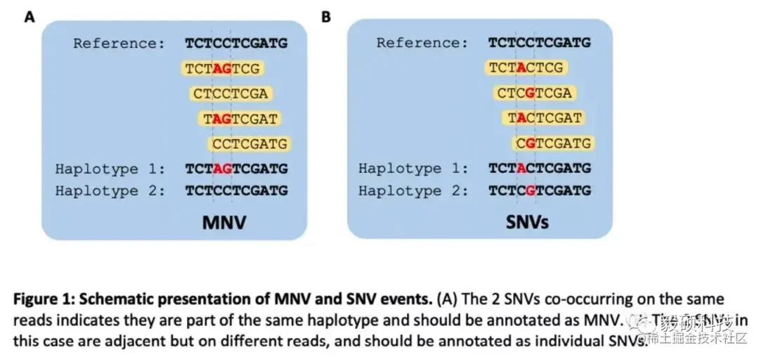 要想准确的鉴定MNV复杂变异,Haplotype的识别是第一步,这就要求变异检测软件必须进行局部组装(local denovo assembly),利用reads的信息拼接出不同的haplotype,从而确定不同位置突变之间的连锁关系。Sentieon的TNscope以及TNhaplotyper2模块都会输出haplotype信息。如果两个相近的变异位于同一个haplotype上,那么Sentieon的MNV合并模块将会把它们在VCF中合并成一个MNV。