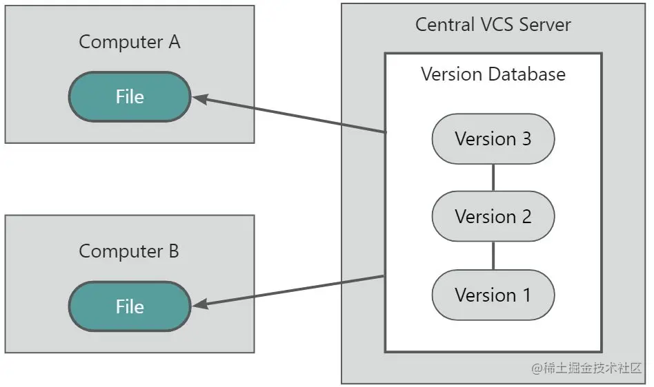 RCS这种本地版本控制存在最致命的缺陷就是只能在本地使用,无法进行团队协作,因而使用的场景非常有限,因此衍生出了集中式版本控制