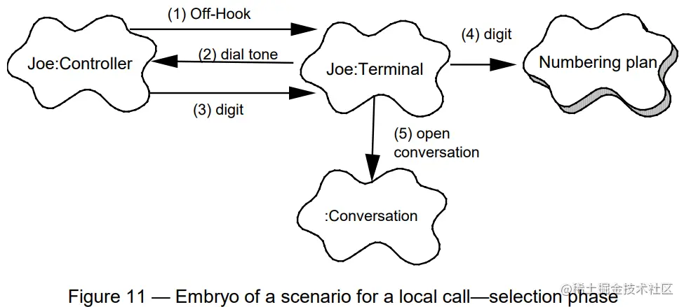 图11显示了小型PABX系统的场景片段。对应的脚本如下: