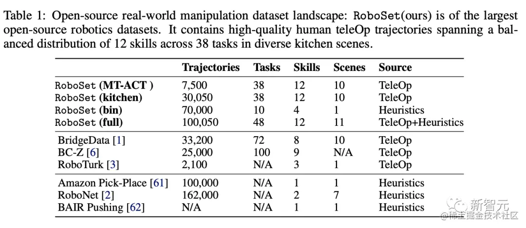 研究的目标是建立一个数据高效的机器人学习范例,对此,研究人员将自己限制在一个冻结的、预先收集的小型但多样化的数据集上。为了捕捉行为多样性,研究人员还在不同的厨房场景中,将不同的技能应用到不同的任务中。在这个项目中,数据集 RoboSet(MT-ACT)由人类远程操作收集的7500 条轨迹组成。该数据集包含 12 种技能,横跨多个任务和场景。