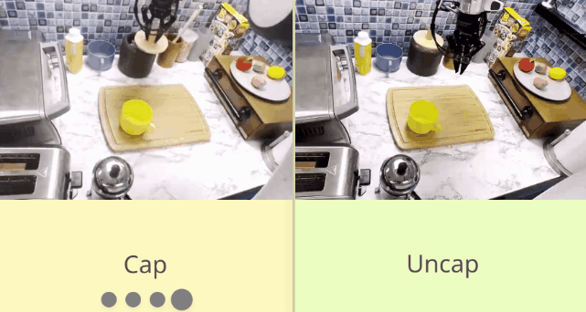 同样地,面对瓶瓶罐罐上的盖子,RoboAgent也能精准拿捏,打开、盖上——绝不拖泥带水。然而在厨房中,除了盖着的调料罐,也有一些需要拧开的罐子,比如料酒和老干妈等等....