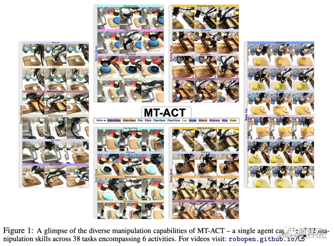 具体来说,RoboAgent在38个任务中,实现了12种不同的复杂技能,烘培、拾取物品、上茶、清洁厨房等等。甚至,它的能力还能够泛化到100种未知的场景中。可以说,上得了厅堂,下得了厨房。