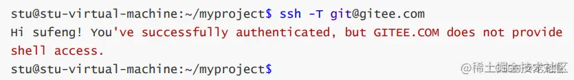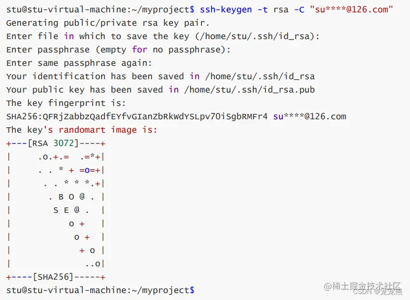 - 生成通信密钥:ssh-keygen -t rsa -C "su@126.com" ,生成的公钥在/home/stu/.ssh/下,如下图。
