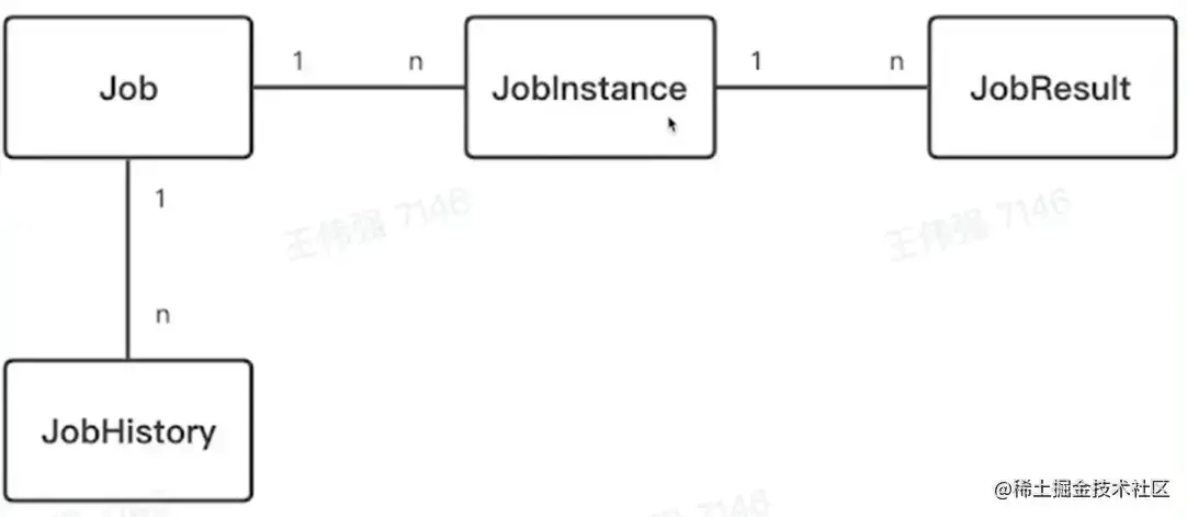 任务实例和任务结果之间也是 1:n 的关系,因为每个任务实例执行后,都可能失败,失败后就需要重新执行