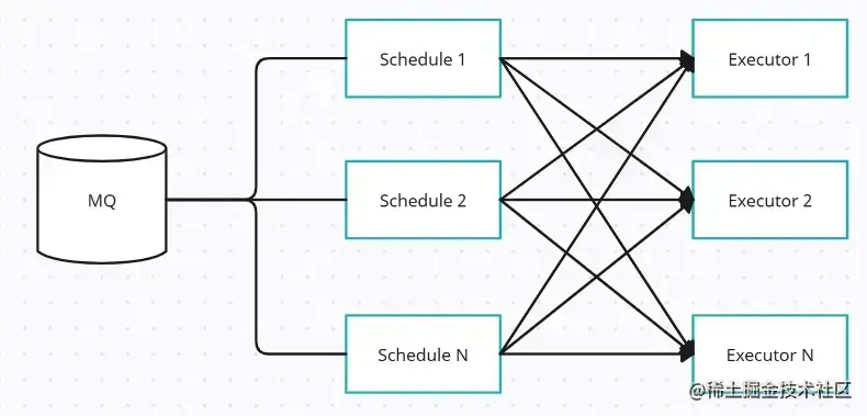 如果有N个执行器 Executor, M 个业务数据区段,最后 �≥�M≥N ,保证每个机器都有工作,且 �M 是 �N 的整数倍。这样任务的颗粒度会更加细腻。