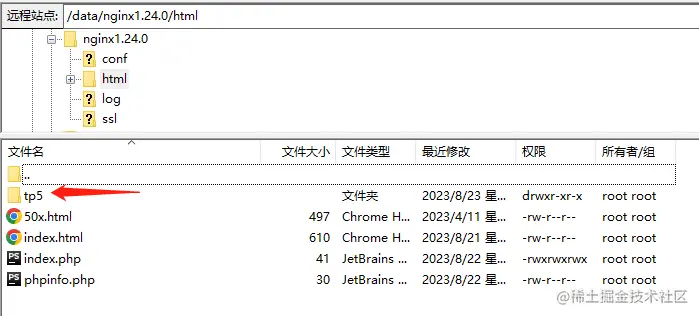将php项目通过ftp上传到 /data/nginx1.24.0/html (上面配置了这个地址会共享到容器内对应的文件夹)