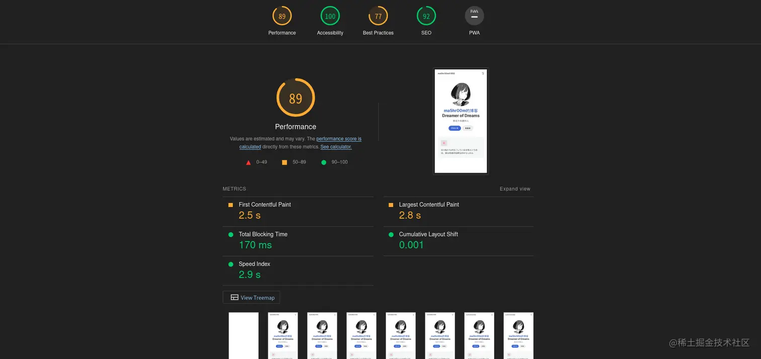 如果你想要数值化的查看某些网页的 SEO 程度,可以在浏览器中安装 🔨lighthouse 浏览器插件。这个插件可以评估目标网页的性能、SEO 等多个方面,并给出直观的评分,帮助开发者更好的完善自己的网站,以优化用户体验,并在搜索引擎中获取更高的排名,以增高曝光度。