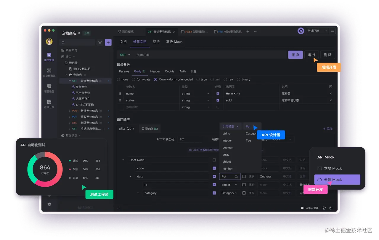 Apifox 是一个比 Postman 更强大的接口测试工具,Apifox = Postman + Swagger + Mock + JMeter,Apifox 支持调试 http(s)、WebSocket、Socket、gRPC、Dubbo 等协议的接口,并且集成了 IDEA 插件。在后端人员写完服务接口时,测试阶段可以通过 Apifox 来校验接口的正确性,图形化界面极大的方便了项目的上线效率。