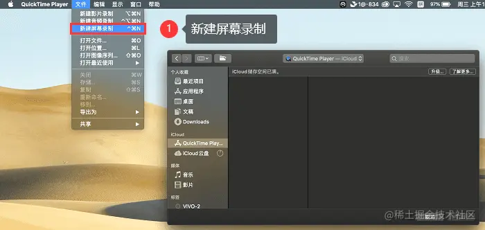 步骤2:在菜单栏中,点击 “文件” 选项,然后选择 “新建屏幕录制” 。点击录制按钮后,会出现一个选取区域的框。拖动这个框来选择您希望录制的屏幕区域。您可以选择全屏录制,也可以选择特定区域进行录制。