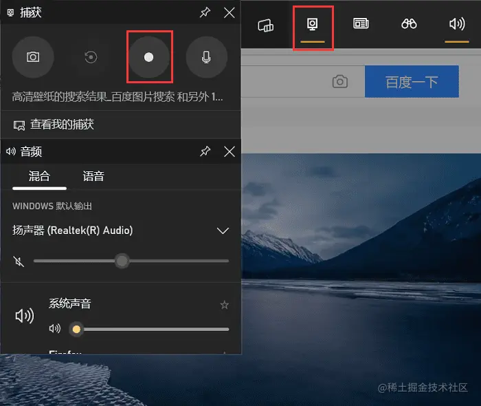 步骤2:点击 “Xbox Game Bar” 界面中的 “相机” 按钮,将进入捕获页面,点击 “录制” 按钮,系统将开始录制整个屏幕。