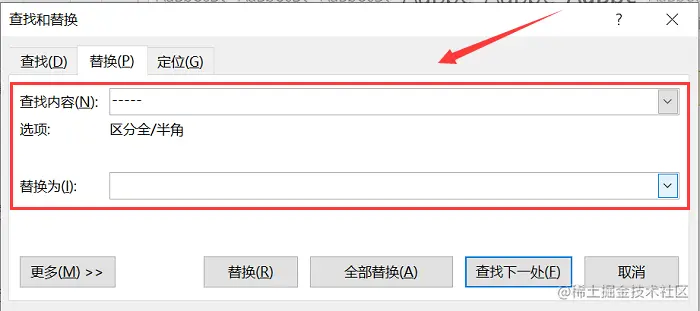 - 点击【替换】选项卡,将【替换为】留空,然后点击【全部替换】;