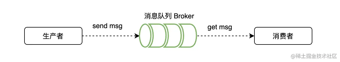 根据我们前面所学的内容,消息队列很重要的一个工作就是对生产和消费者进行解耦的过程。有人负责生产,有人负责消费,两者没有直接交互,交给中介者去处理。 比如说系统A会交给系统B去处理一些事情,但是A不想直接跟B有关联,避免耦合太强,就可以通过在A,B中间加入消息队列,A将要任务的事情交给消息队列 ,B订阅消息队列来执行任务。 这种典型的模式是由两个线程和一个队列构成:
