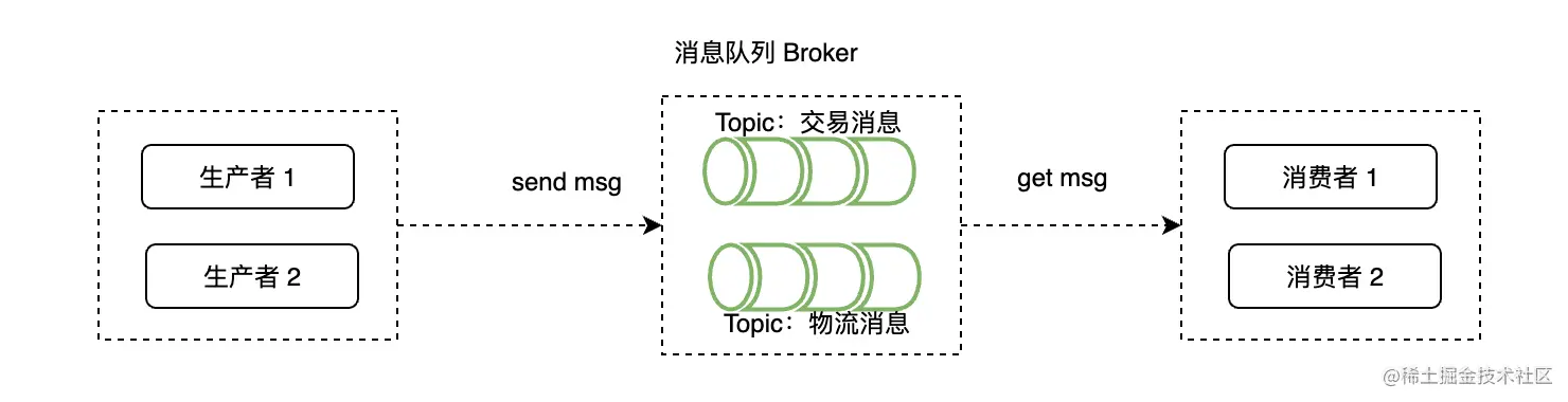 - Topic 主要是为了将消息进行归类,同一个业务中消息繁复,我们将消息按照特性进行划分,相同类型的消息称为一个 Topic。