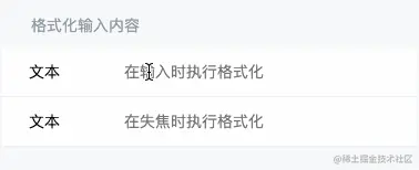 上述例子中,我们设置了 formatter 校验规则为不能为数字,当我们不设置 formatTrigger 时默认走的是 onChange 校验时机,即实时输入校验。当设置 formatTrigger 为 onBlur 时则是走的失焦后校验。