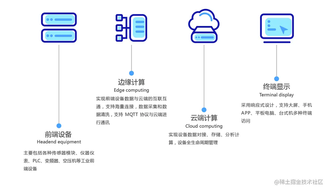 软件主要包括前端设备、边缘计算、云端计算、终端显示 4 个层面