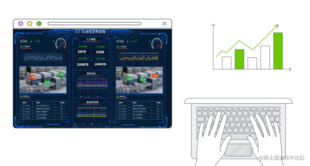 图扑 Web 组态软件,是图扑物联自主研发的一款应用于泛工业物联网场景的B/S模式数据可视化监控软件,可帮助企业快速搭建自己专属的物联网监控平台。