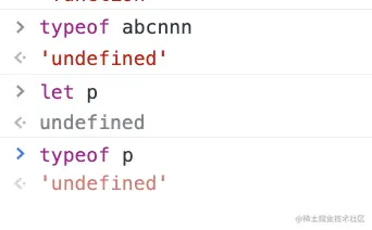 对于没有被声明的 abcnnn 和 声明却没有赋值的 p ,返回结果却都是 undefined 。