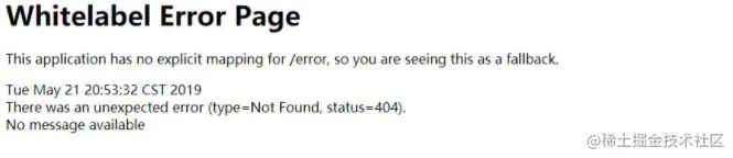 如果不进行全局的异常处理,Spring Boot会默认响应一个WhiteLabel Error Page,这样的响应结果很不友好。