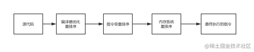 - **指令级并行的重排序。**现代处理器采用了指令级并行技术(Instruction-Level Parallelism, ILP)来将多条指令重叠执行。如果不存在数据依赖性,处理器可以改变语句对应机器指令的执行顺序。