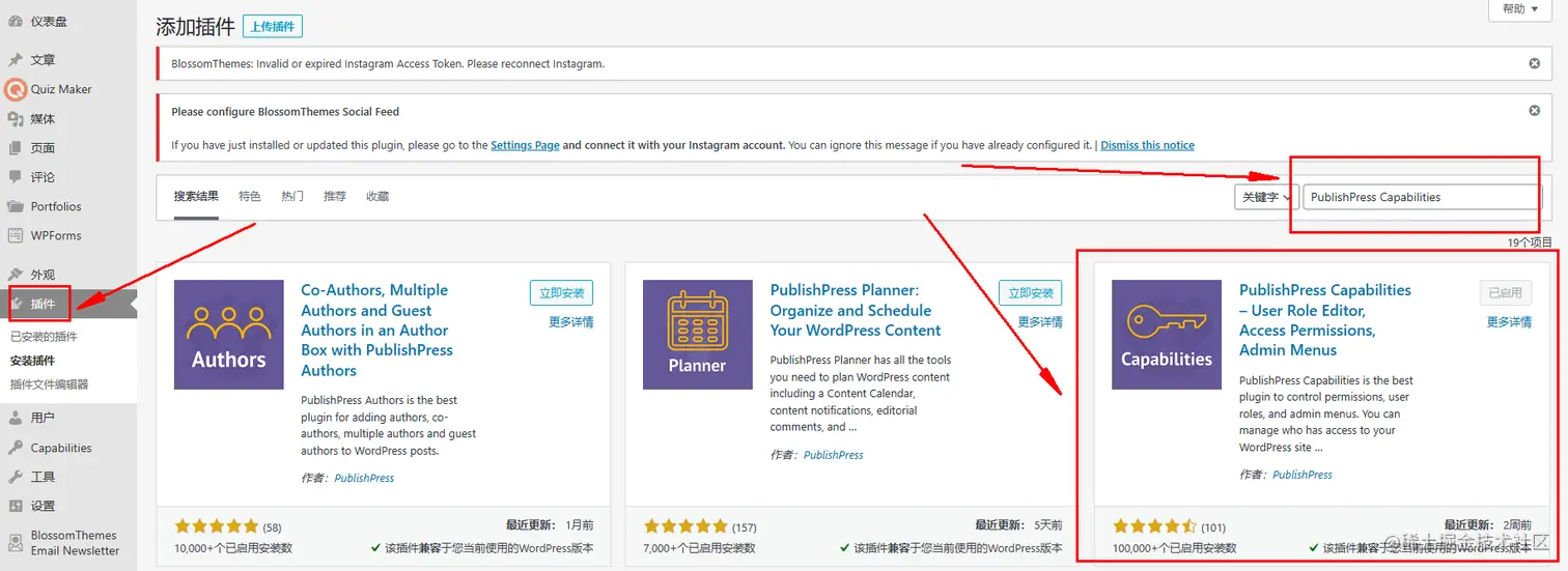点击插件 ——> 搜索 PublishPressCapabilities——> 选择 PublishPressCapabilities