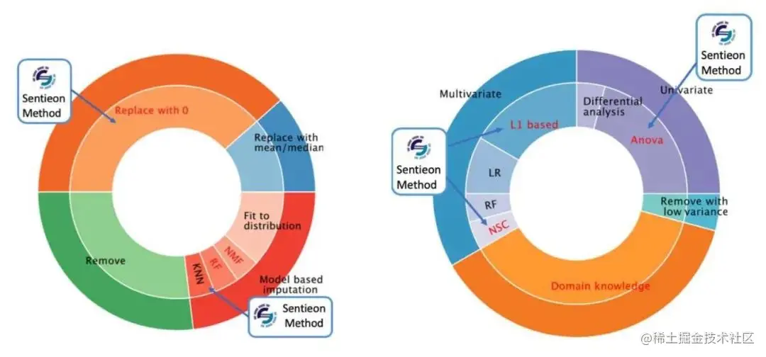 在数据预处理阶段,由于数据集存在部分标签缺失的问题,Sentieon是基于生物学知识将部分空白数据置为0,并结合nearest neighbor拟合的方法对组学数据进行清洗。