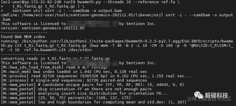 - 使用Sentieon BWA进行读取比对。
