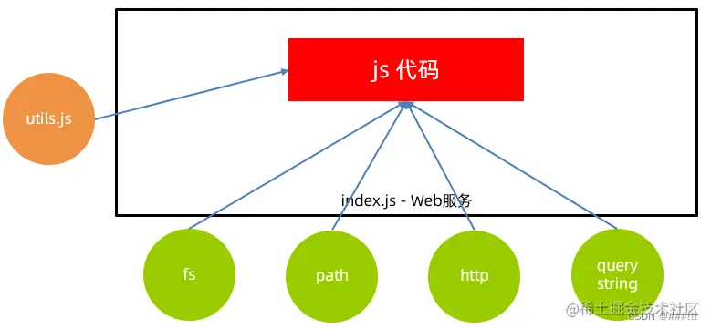 // Node.js 环境内置模块直接写模块名(例如:fs,path,http)// 自定义模块:写模块文件路径(例如:./utils.js)