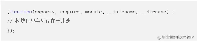 - 在 Node.js 中每个文件都被当做是一个独立的模块,模块内定义的变量和函数都是独立作用域的,因为 Node.js 在执行模块代码时,将使用如下所示的函数封装器对其进行封装