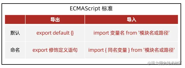 - ECMAScript 标准,命名导出和导入的语法?