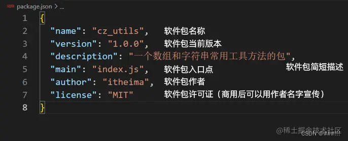 记录软件包的名字,作者,入口文件等信息
