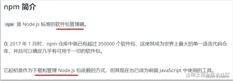 - npm 简介链接: 软件包管理器,用于下载和管理 Node.js 环境中的软件包