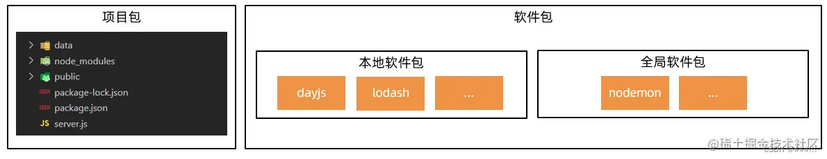 - 全局软件包:作用在所有项目,一般封装的命令/工具,支撑项目运行