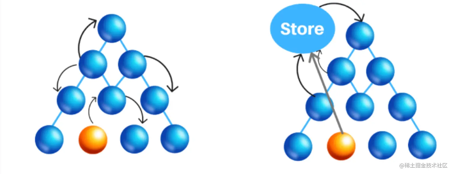 状态归属于两个节点向上寻找到最近的祖宗节点!【状态上升】