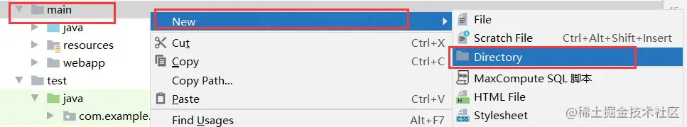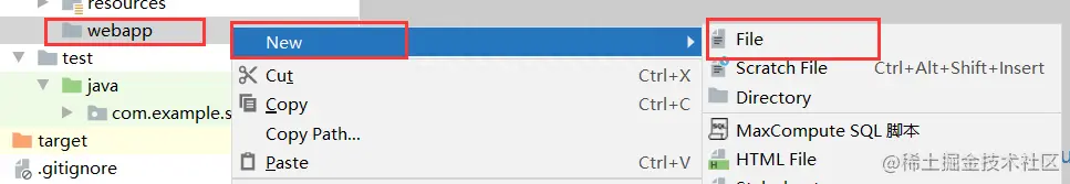 在mian 目录下创建 webapp 文件夹