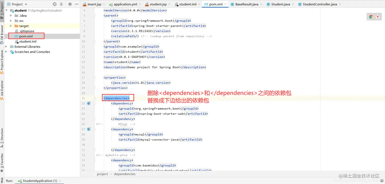 注意:StudentController注解是 @Controller 而不是 RestController 。