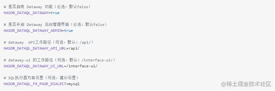 HASOR_DATAQL_DATAWAY_ADMIN** 两个配置是必须要打开的,默认情况下 Datawaty 是不启用的。