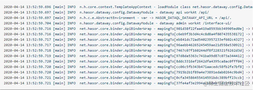 当看到 “dataway api workAt /api/” 、 dataway admin workAt /interface-ui/ 信息时,就可以确定 Dataway 的配置已经生效了。