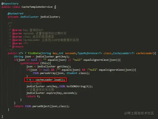 从这里可以看出,我们并不关心缓存的数据从哪里加载,而是交给具体的使用方,而且使用方在使用时再也不必关注缓存击穿的问题,因为我们都给抽象了。