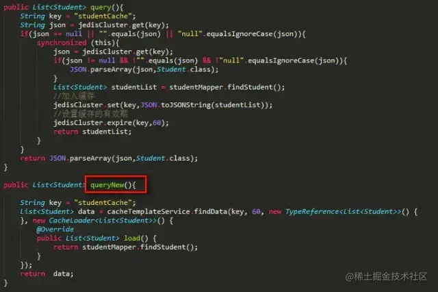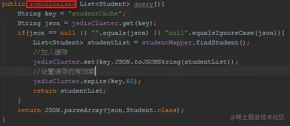 上面的代码,是一个典型的写法:当查询的时候,先从Redis集群中取,如果没有,那么再从DB中查询并设置到Redis集群中。