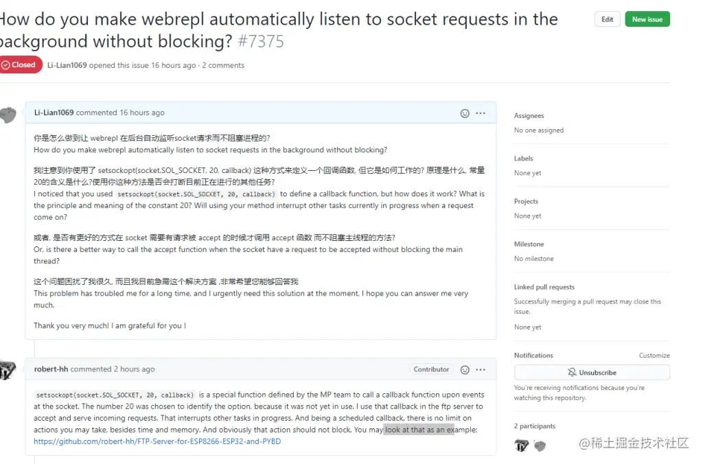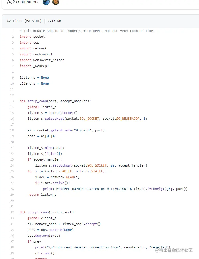 webrepl给socket对象绑定了一个回调函数, 我一直好奇这个 20 是什么意思, 所以我一直查啊查, 一直找不到结果, 直到我给开发组提交了 issue